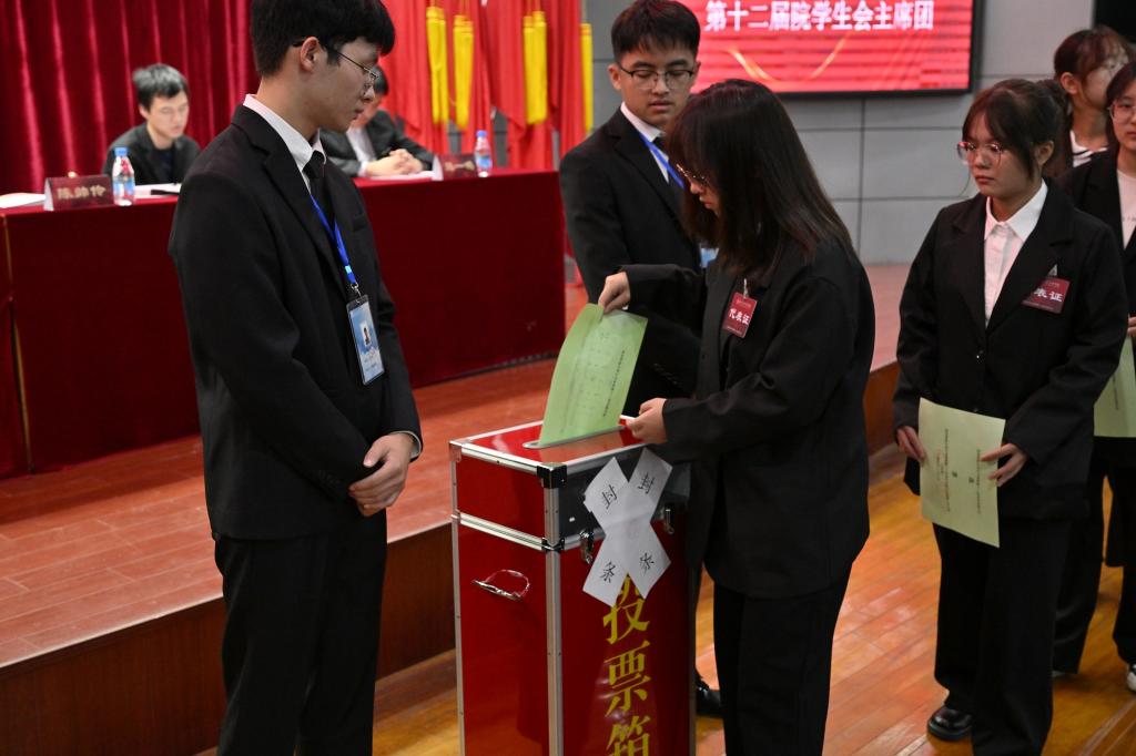 大会闭幕式上,院团委老师刘梦平致闭幕词。大会圆满完成了各项议程,在《国际歌》歌声中胜利闭幕。在随后召开的第十二届学生委员会第一次全体会议上,选举产生了新一届学生会主席团执行主席。
