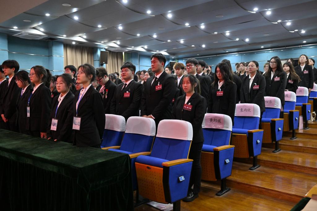 大会在全体代表齐唱国歌中开幕。开幕式上,赵考全代表兄弟高校学生会致辞,史一迪代表上级学生会致辞,并向大会的召开表示祝贺。
