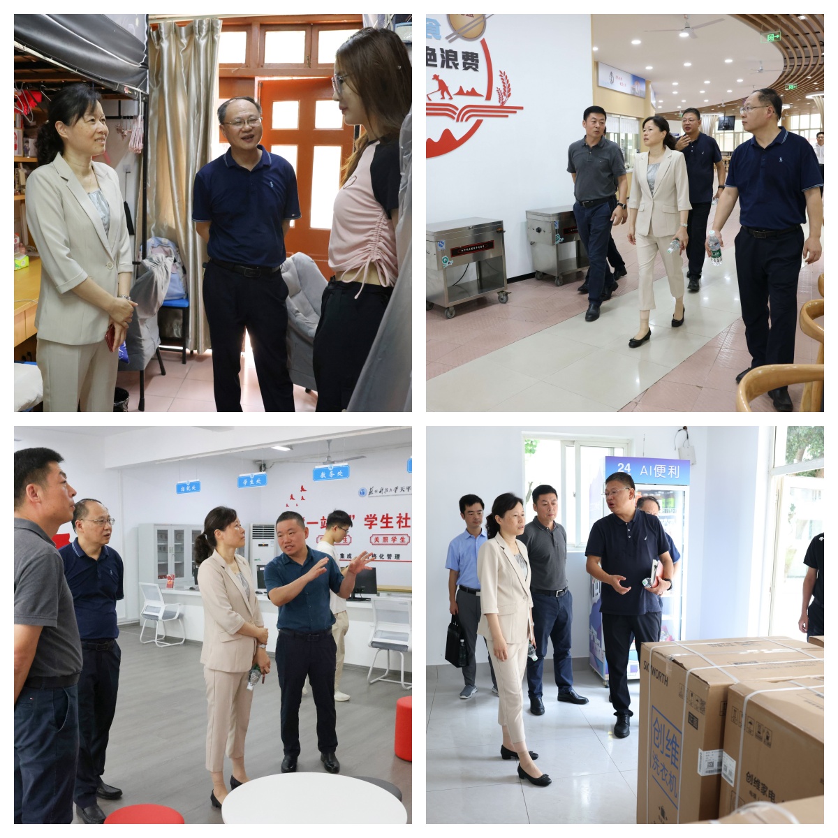 顾菊平校长、孙士俊副校长一行先后到教学区、宿舍区、食堂、“一站式”学生社区等区域进行实地检查,重点了解教学区、宿舍、食堂的新学期准备情况及“一站式”学生社区的建设进展情况。