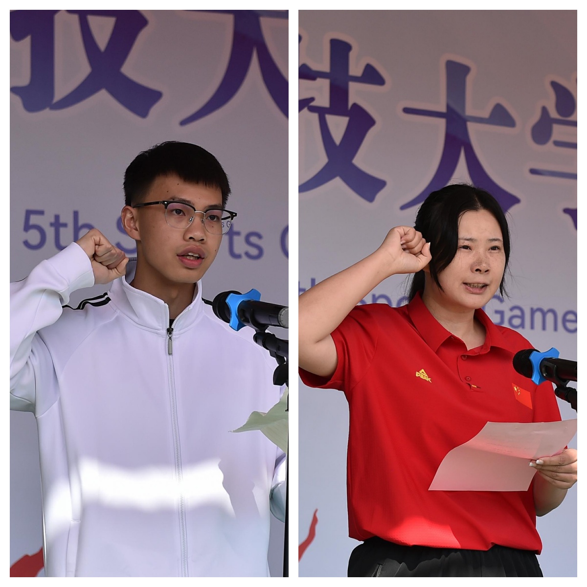 运动员代表韦政洋同学和裁判员代表许婉莹老师分别上台进行了宣誓。学院党委书记郑群宣布第十五届运动会开幕。随后表演方阵带来《一路花开》团体表演,为开幕式奉献了一场精彩的视觉盛宴。