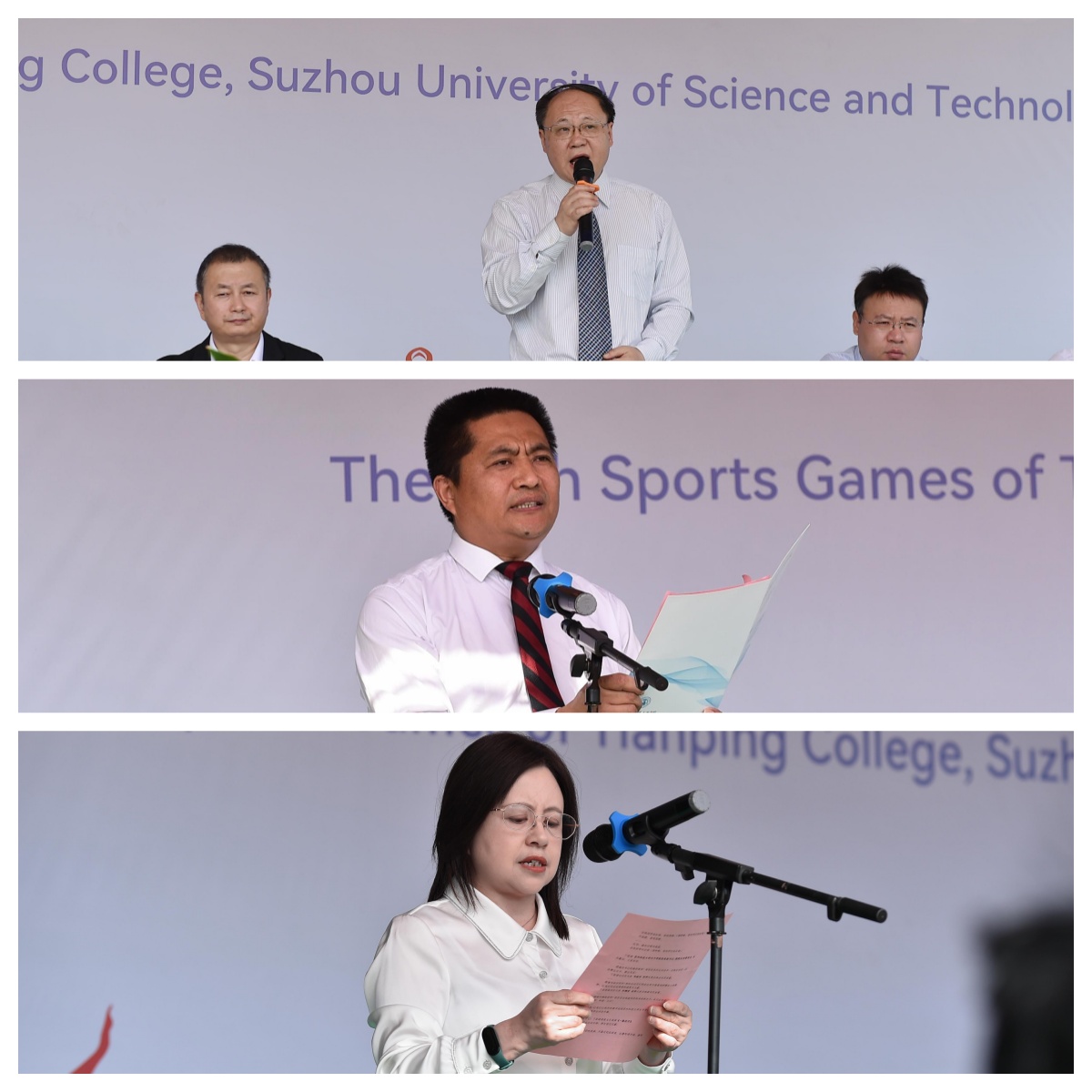 党委副书记、副院长孙景为本届运动会致开幕词,他介绍了学院近年来在省市各项体育赛事中取得的成绩,强调体育承载着国家强盛、民族振兴的梦想。希望全体师生齐心协力,将本届春季运动会打造成为一场“高效、精彩、热烈、圆满”的体育盛会,为学院的教育教学改革增添浓墨重彩的一笔,也为同学们的校园生活留下一段美好而难忘的回忆。