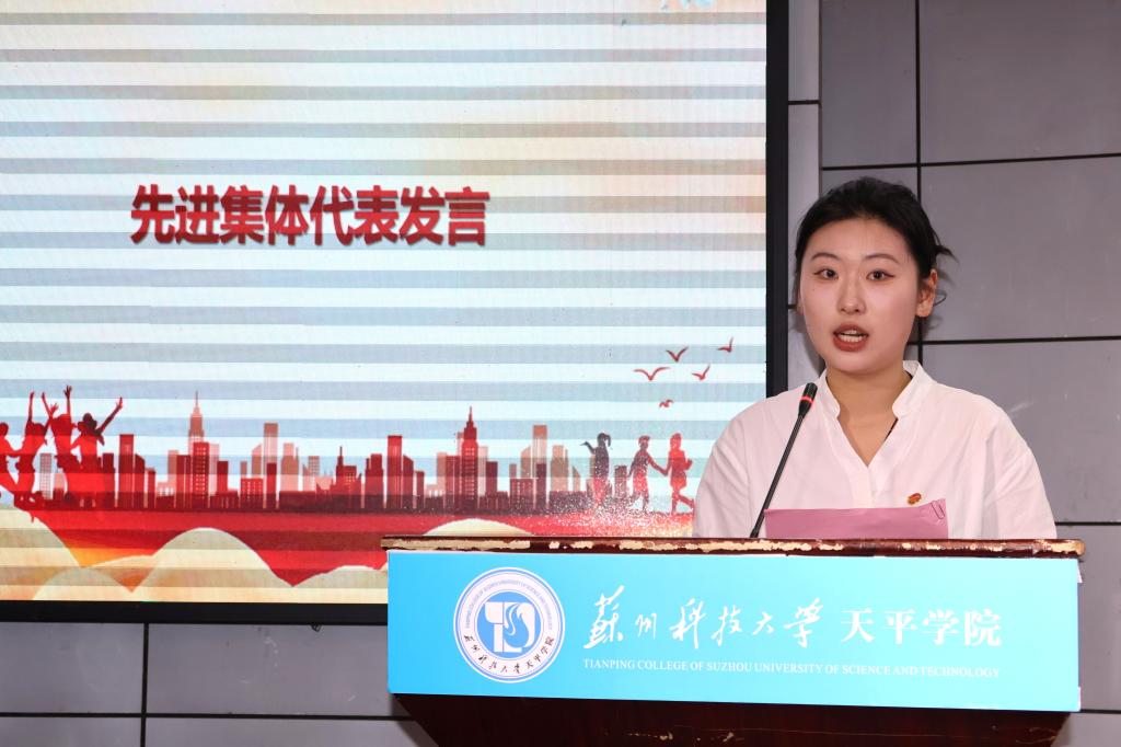 大会中,先进集体和优秀个人代表发言。“青年五四奖章”获得者韩晋嘉以“青春在奉献中闪光”为主题,结合自身军旅经历和无偿献血的感人事迹,向在场青年发出铿锵有力的号召。作为“五四红旗团支部”获奖集体代表,王祯从思想建设与学习提升、团队凝聚力建设、先锋模范作用发挥等方面展示了团支部的不懈努力。