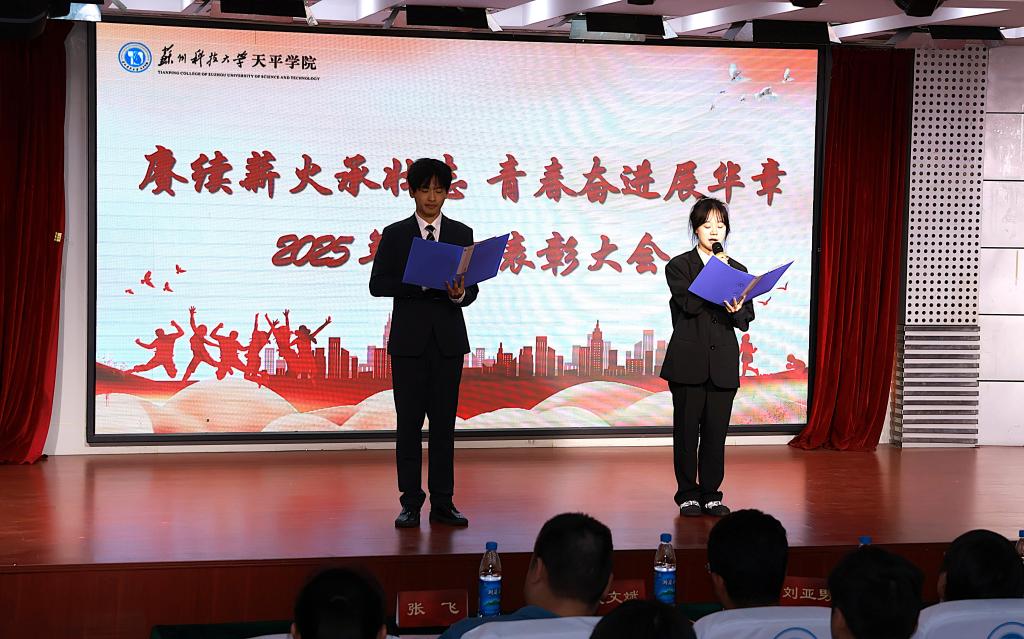 表彰大会在庄严的国歌声中拉开帷幕。随后,永利官网青年代表吕卓凡、刘莹带来诗朗诵《青春的回答》,以饱含深情的语言诠释新时代青年的责任与担当。