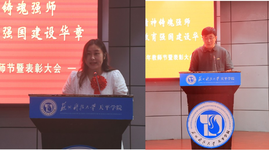 大会在庄严的国歌声中拉开帷幕。会上,党委副书记、副院长孙景宣读《关于表彰2025年度“三育人”工作先进个人的决定》,党委书记夏阳向受表彰同志颁发荣誉证书并表示祝贺。优秀教师代表李星燃、新入职教师代表宋嘉依次上台发言,分享自己工作中的感悟和思考。