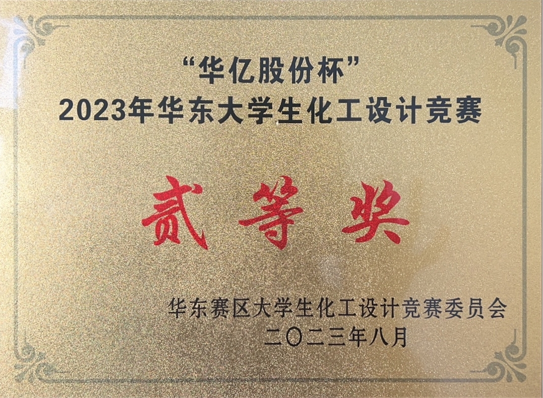 近日,“华亿股份杯”2023年华东大学生化工设计竞赛暨第十七届全国大学生化工设计竞赛华东选拔赛决赛在上海电力大学落下帷幕。本次比赛吸引了江浙沪地区66所高校589个队伍参赛,最终59个队伍参加决赛角逐。由环境科学与工程学院2020级应用化学专业学生吕启薇、庄巍、王晨、彭秋孟组成的“五烯腈队”队伍(指导老师:韩志慧,刘垚,张强,张钱丽)代表永利官网参加比赛,荣获“华亿股份杯”2023年华东大学生化工设计竞赛二等奖。