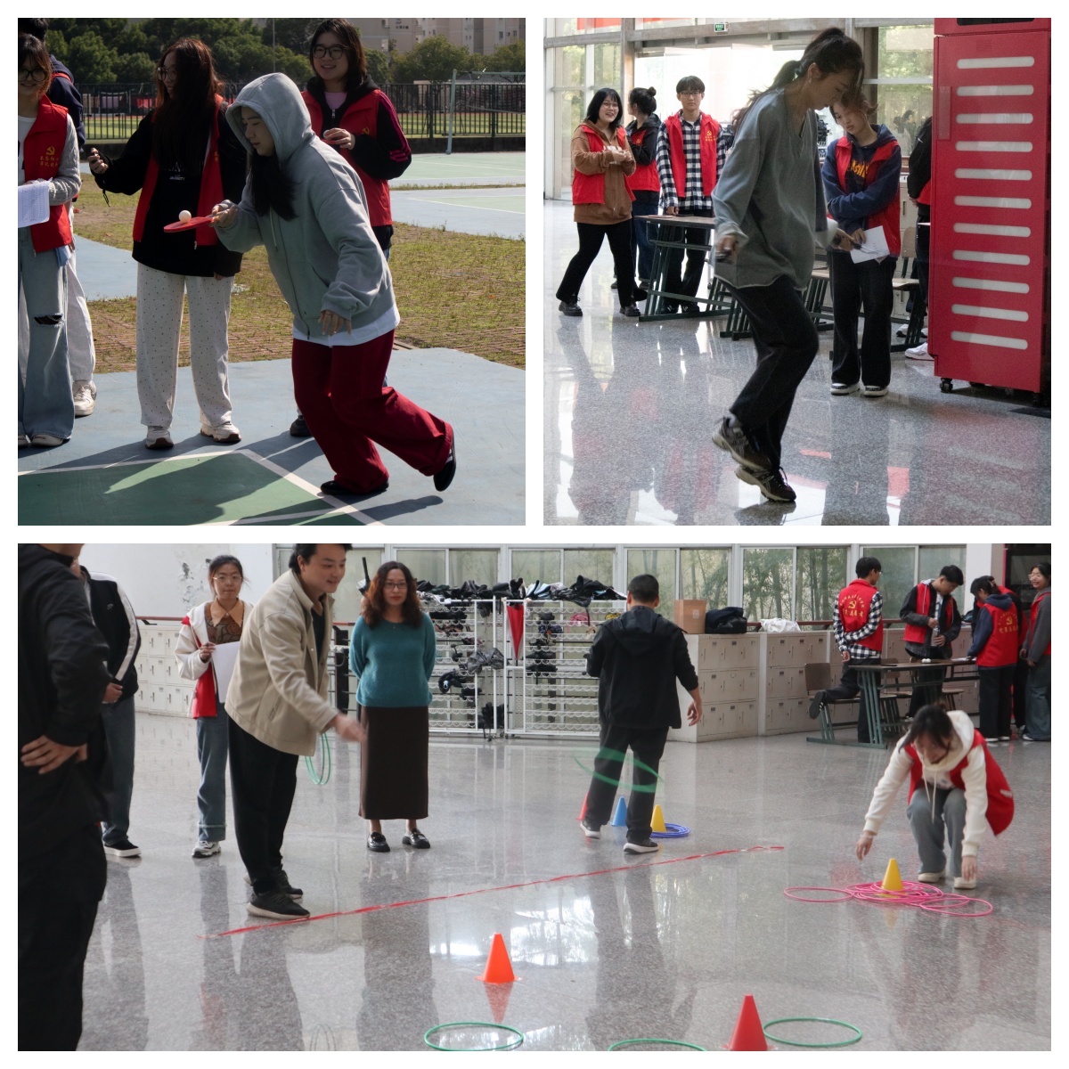 本次文体活动设置了飞镖、套圈、一分钟跳绳、一分钟定点投篮、夹乒乓球、一分钟抛接球、托球跑等比赛项目,教职工们纷纷热情参与,全情投入。图书馆内,篮球场上,各项比赛精彩纷呈,气氛热烈,加油声、欢呼声此起彼伏,大家脸上洋溢着欢乐的笑容。