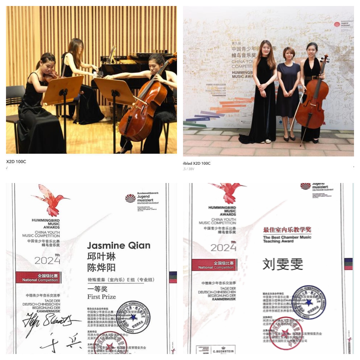 2024年7月21日下午,永利官网音乐学2322班邱叶琳和音乐学2221班陈烨阳代表江苏赛区参加了第九届中国青少年音乐比赛•蜂鸟音乐奖,获得了室内乐专业组一等奖的好成绩,并获得G.亨乐出版社原作版奖,刘雯雯老师获“最佳室内乐教学奖”。