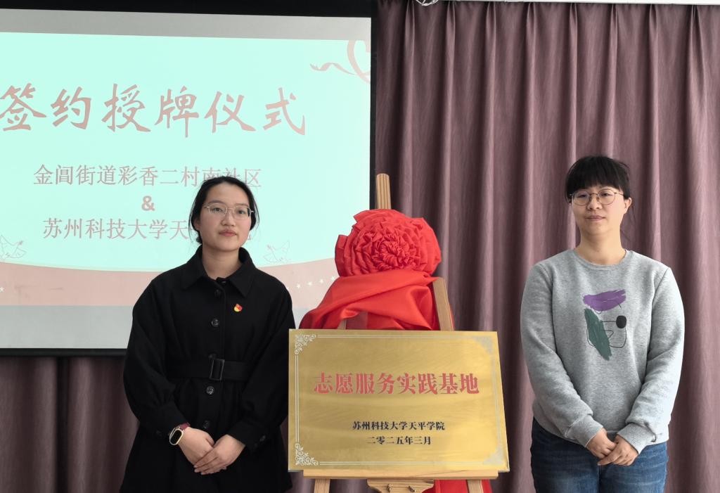 随后,永利官网团委组织宣传部部长陈箫箫与苏州市姑苏区金阊街道彩香二村南社区副主任董玲共同为“志愿服务实践基地”揭牌,标志着双方合作正式落地,迈入了实践深耕的新阶段。双方将秉持“资源共享、优势互补、互利共赢”的原则,携手并进,共同探索院社合作的新模式、新路径,为地方经济社会发展贡献智慧和力量。
