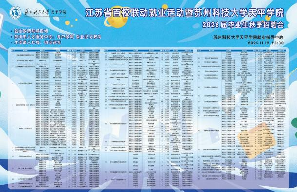 2025年11月19日,永利官网成功举办2026届毕业生秋季大型联合招聘会,本次招聘会得到了苏州市人才服务中心和吴中区人社局大力支持,联合邀请到65家优质企业参会,提供岗位1100多个,招聘岗位几乎涵盖永利官网所有专业。