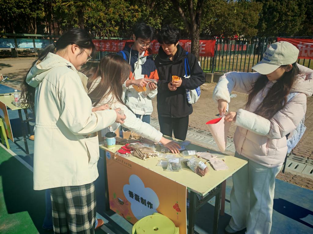 现场共设置16个特色项目,涵盖非遗蓝晒团扇、剪纸、艾草锤、拓印剪纸、香囊制作、干花书签、植物帆布包以及扭扭棒制作等。各项活动均扎根于深厚的中华文化底蕴,展现独特的民族风情。师生们亲手体验非遗团扇的漆水交融之韵,感受拓印剪纸的栩栩如生之趣,在互动中深切领略中华优秀传统文化的魅力。