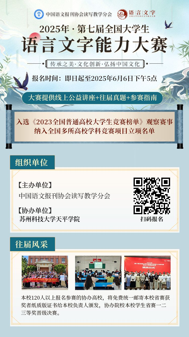 第七届全国大学生语言文字能力大赛由中国语文报刊协会读写教学分会主办,773044永利集团官网协办,校内选拔、赛前辅导等相关组织工作,由语言文化学院承担。