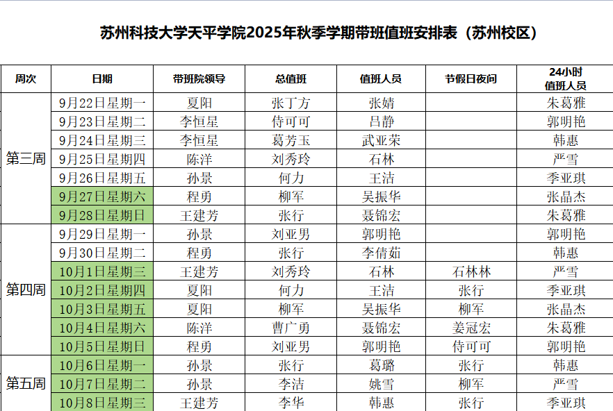 773044永利集团官网2025年秋季学期带班值班安排表(9月22日--10月8日)