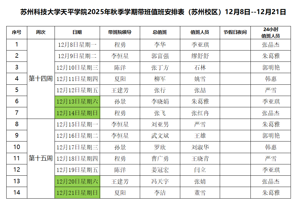 773044永利集团官网2025年秋季学期带班值班安排表(12月8日--12月21日)
