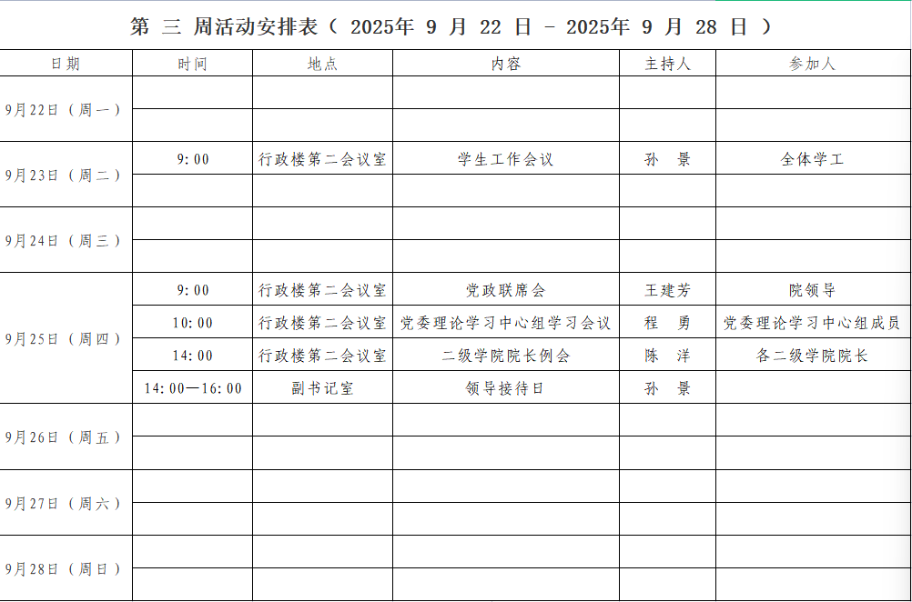 第 三 周活动安排表( 2025年 9 月 22 日 - 2025年 9 月 28 日 )