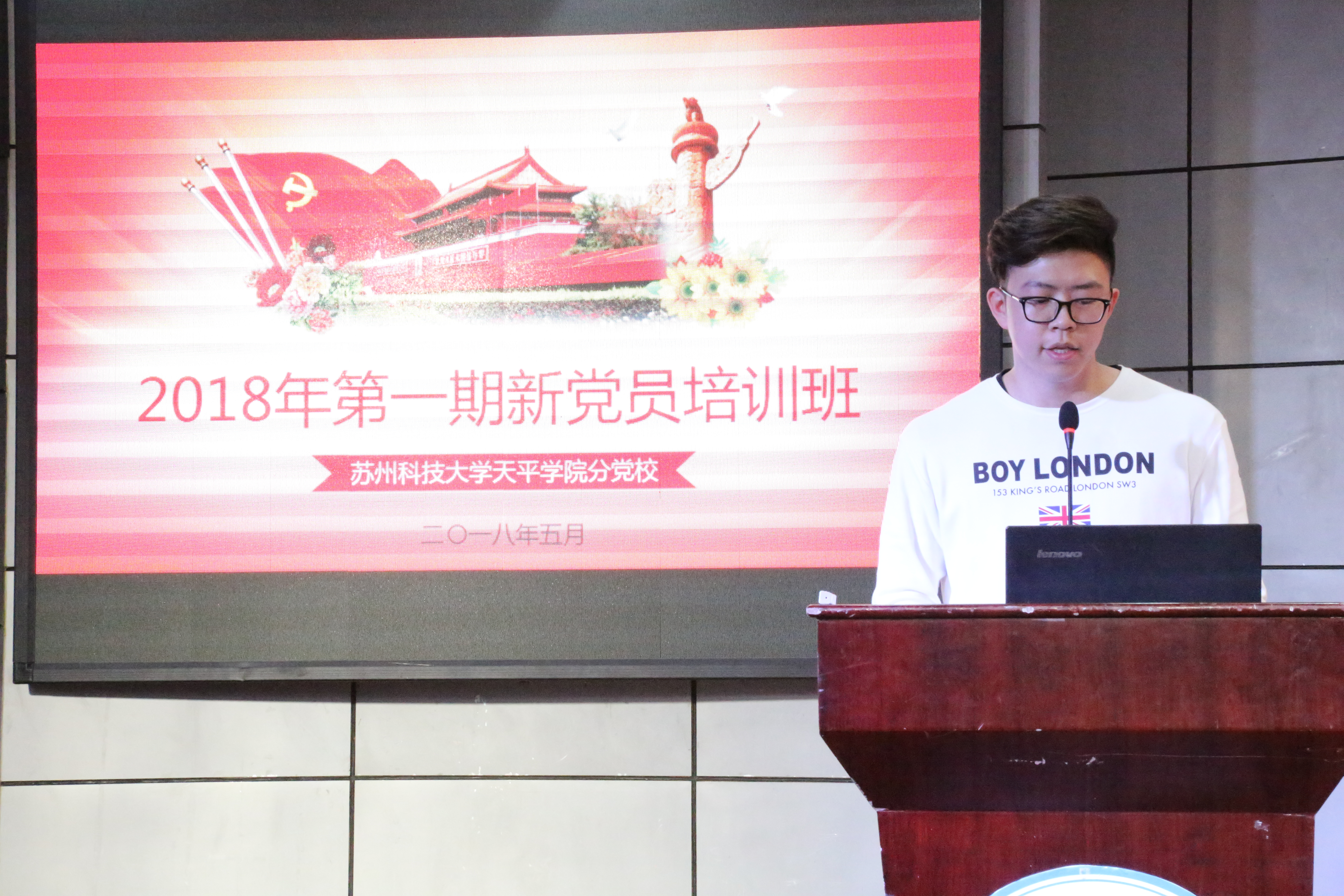 本期培训班在庄严的国歌中拉开序幕,团委书记介绍了培训内容和安排、考核结业的要求和注意事项。学员代表沈扬发言,表态全体学员要充分履行学生党员的职责,在学习、生活和工作中起到模范带头作用。在团委书记的监视和团委副书记的带领下,全体党员面向党旗庄严宣誓。