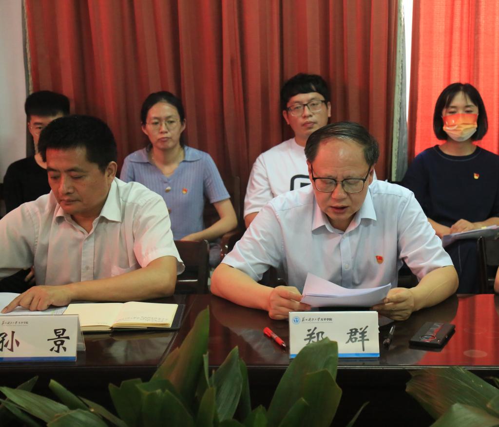 党委书记郑群代表学院党委向全体共产党员和党务工作者致以节日的问候,向受到表彰的先进集体和个人表示热烈的祝贺。郑群书记就进一步加强和改进党的建设,推动学院事业发展提出三点要求:一是在传承发扬中,进一步强化共产党人的初心使命;二是在开拓进取中,进一步践行党员干部的责任担当;三是在聚力发展中,进一步发挥党组织的功能作用。他表示,要以主题教育开展为契机,紧紧围绕学院事业发展大局,用对伟大事业的执着追求、对学院发展的责任担当,乘势而上,砥砺前行,奋力开创学院高质量发展新局面!