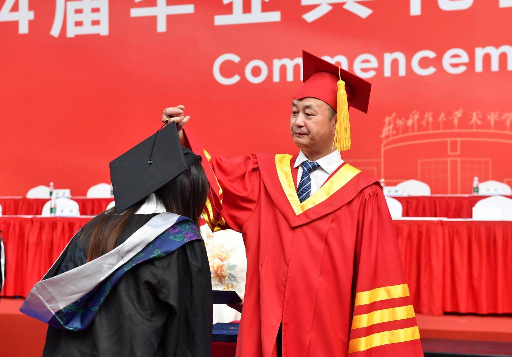 6月13日下午,773044永利集团官网2024届毕业典礼暨学位授予仪式在石湖校区体育馆隆重举行。校领导张新亚、李勇、崔雪丽,学院领导、苏州农业职业技术学院和苏州市职业大学相关领导、学院相关职能部门和教学单位负责人、全体辅导员、全体毕业生和家长代表参加了典礼,典礼由学院副院长张婧主持。