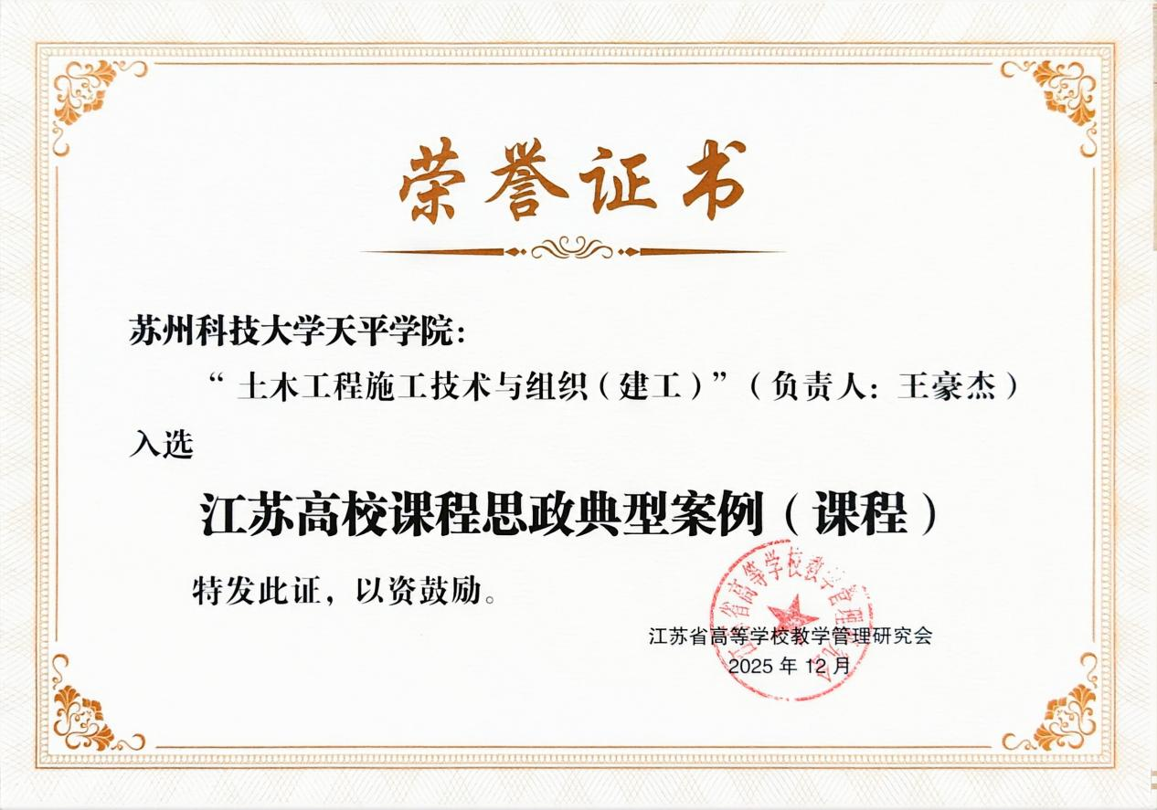 近日,江苏省高等学校教学管理研究会课程思政建设工作委员会公布了2025年江苏省普通本科高校课程思政典型案例入选名单,永利官网《土木工程施工技术与组织(建工)》入选江苏高校课程思政典型案例(课程)。