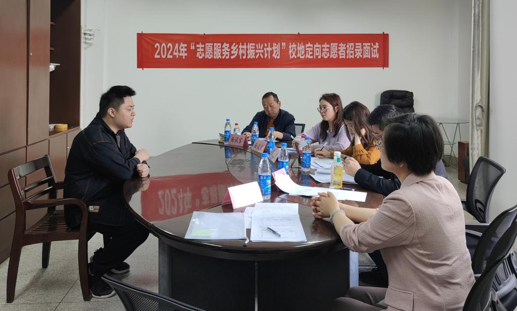 为选拔一批具备专业知识、热爱乡村、有志于投身乡村振兴事业的优秀大学生,高质量做好永利官网“两个计划”宣传招募工作,5月7日,永利官网顺利开展阜宁县“志愿服务乡村振兴计划”校地定向志愿者招募工作。共青团阜宁县委员会副书记余朝洋、副书记薛威、学少部部长李咏絮、阜宁县乡村振兴计划项目办负责人路杨、永利官网团委书记刘亚男、就业指导中心主任许振楠及十余名毕业生参与此次面试。