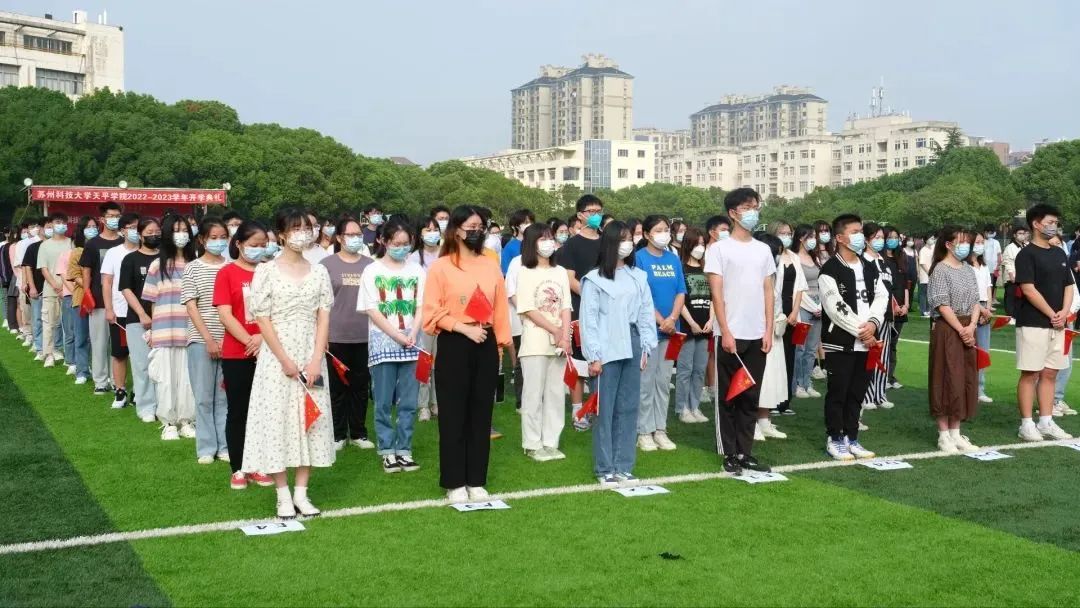 上午8时,伴随着乐曲,3名英姿勃发的国旗护卫队学生迈着铿锵的步伐,护送着鲜艳的五星红旗走向升旗台。“起来!不愿做奴隶的人们!把我们的血肉,筑成我们新的长城……”伴随着雄壮嘹亮的《义勇军进行曲》响起,鲜艳的五星红旗迎着朝阳冉冉升起,迎风飘扬。全体人员满怀崇敬之情面向国旗肃立致敬,行注目礼,高唱国歌,祝福祖国繁荣富强,祝福人民幸福安康。学生代表乔唐昊闻在红旗下发言,党的初心和使命是我们的情感之根,是我们的出发点,也是我们的归宿。作为大学生的我们应当坚决贯彻习近平总书记重要指示精神,以高度的政治自觉和责任担当,认真学习、坚持党的领导,为党的二十大胜利召开做出自己的贡献。接着,乔唐昊闻同学带领在场学生在国旗下庄严宣誓。
