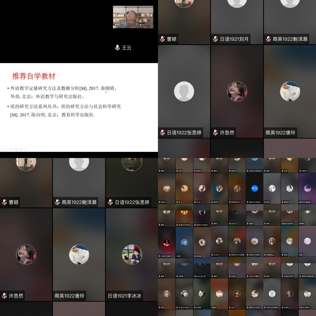 王云博士表示,数据分析是问卷调查法的关键一步,数据背后隐藏的信息,以及该如何解释、分析产生此类现象的原因,很可能成为课题的切入点。为更好地引导理解,王云博士以英语系学生的成绩数据为例,详细介绍了数据分析的基础知识。同时,王云老师鼓励高年级学生及青年教师,当收集到的数据不同于常规时,内心不用慌张,而应首先复盘调查过程,排查错误步骤,检验效度和信度,在确认数据无误的基础上,继续深入挖掘、思考,研究的突破往往就存在于这些“异常”的数据中。