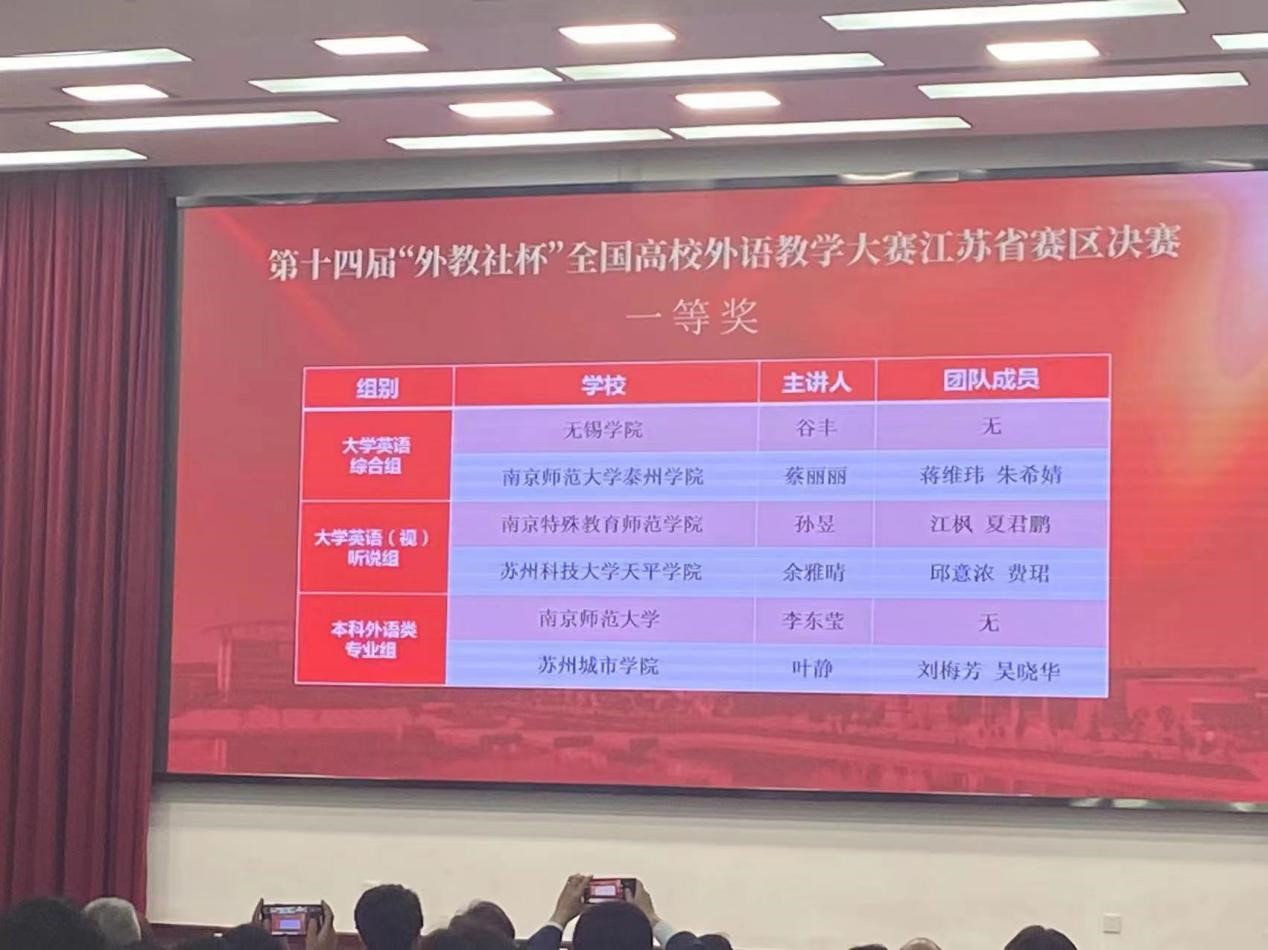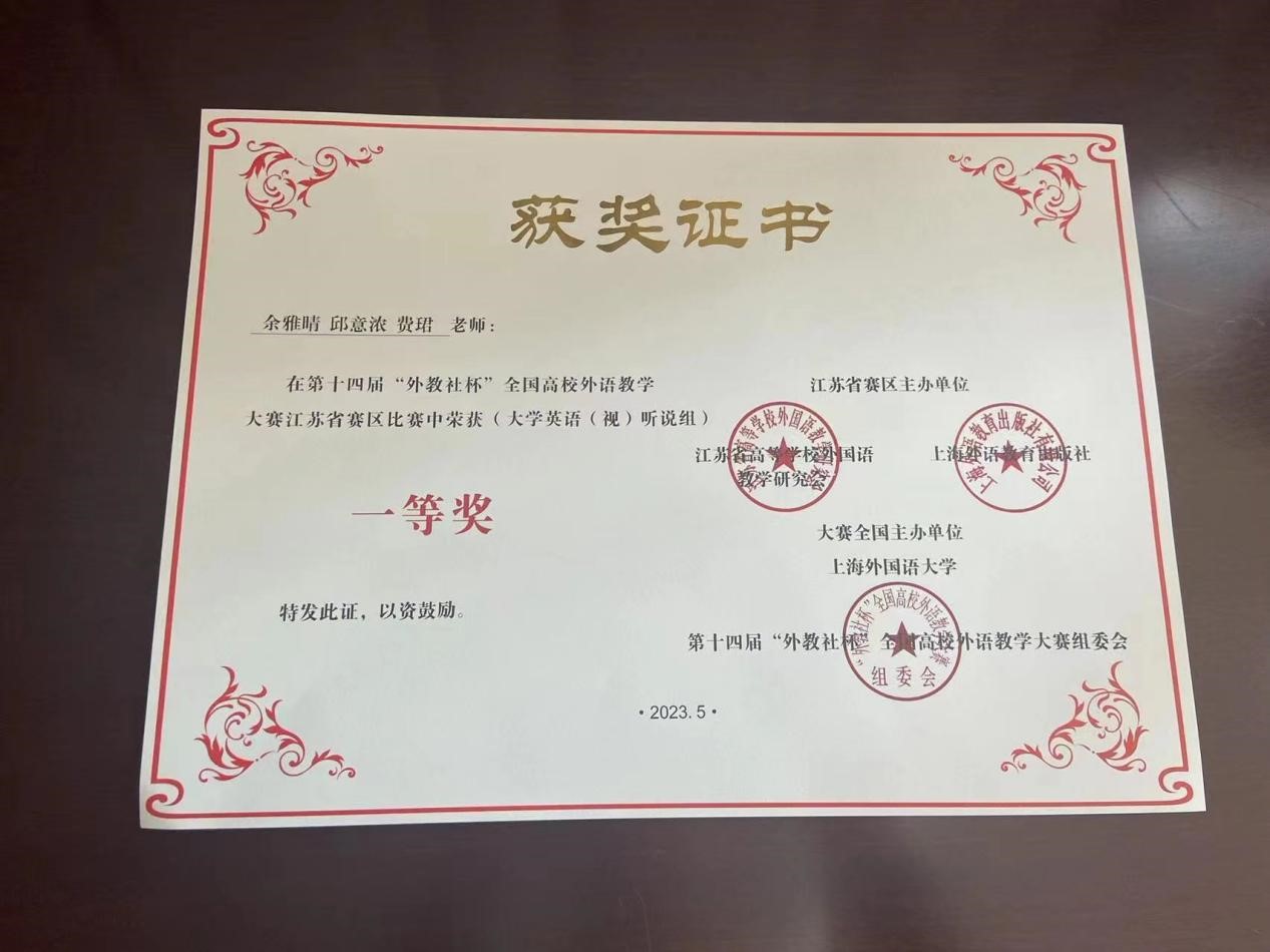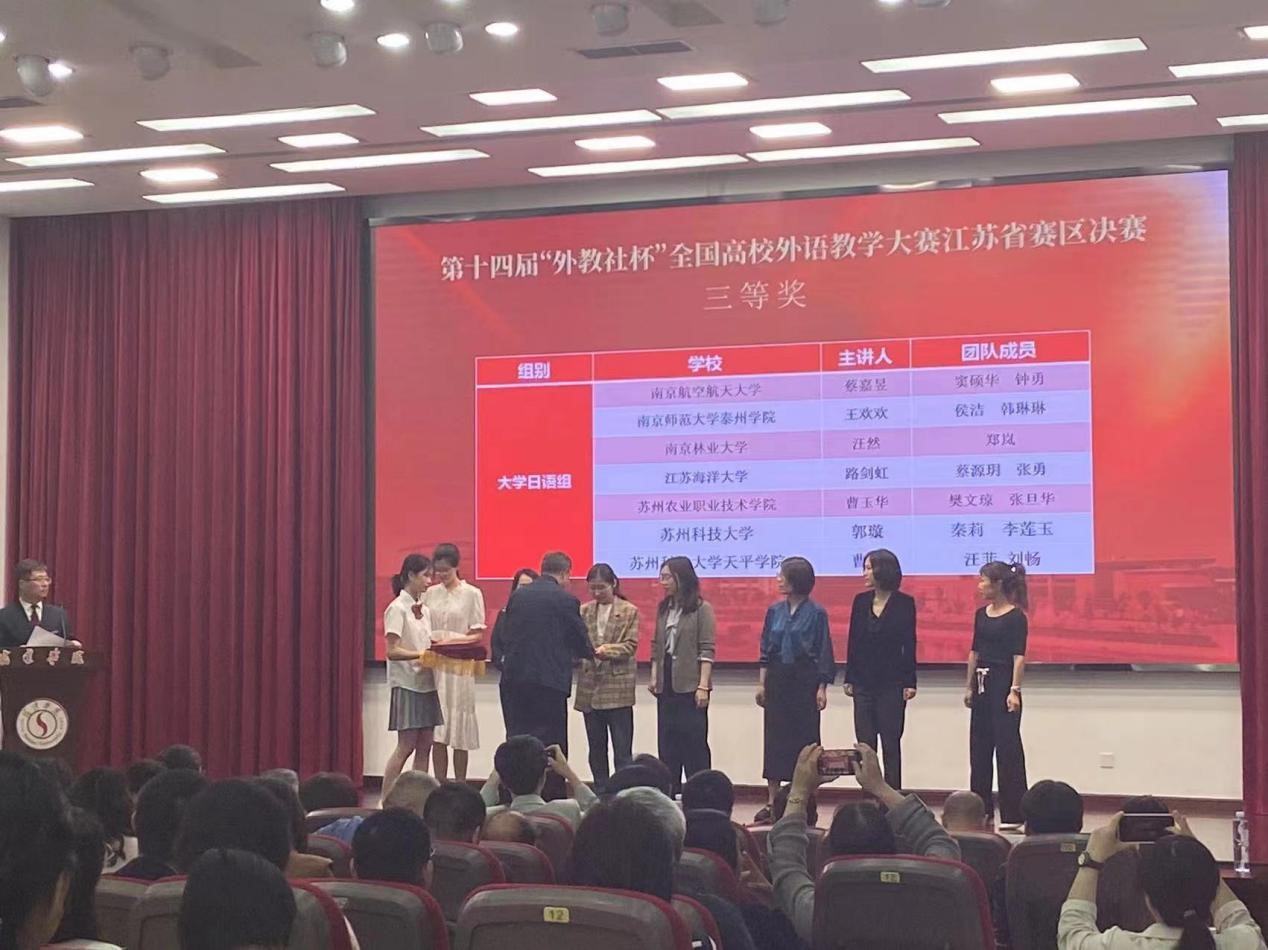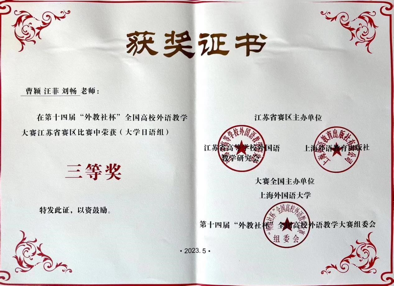 2023年5月12日至5月13日,第十四届“外教社杯”全国高校外语教学大赛江苏省赛在宿迁学院举行。永利官网语言文化学院英语系教师余雅晴、邱意浓、费珺获大学英语(视)听说组一等奖,日语系教师曹颖、汪菲、刘畅获大学日语组三等奖。