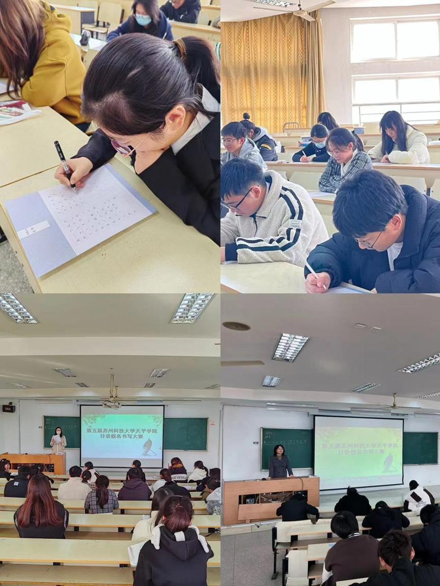 2023级日语专业全体学生参加了11月20日(星期一)下午1:30在天平校区J16举办的第五届假名书法大赛。本届大赛以“日有所练 书写美好”为主题,经过日语专任教师刘凯老师、汪菲老师的严格评审,比赛共产生一等奖2名,二等奖4名,三等奖6名。大赛的成功举办促进了学生规范用字、规范书写意识的养成。