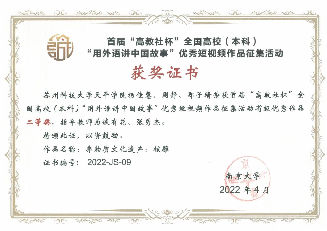 在全国高等学校大学外语教学研究会的指导下,南京大学联合高等教育出版社于2021年12月-2022年5月,共同举办首届“高教社杯”高等学校(本科)“用外语讲中国故事”优秀短视频作品征集活动。773044永利集团官网举办相应校级初赛,即773044永利集团官网“用外语讲中国故事”优秀短视频比赛。