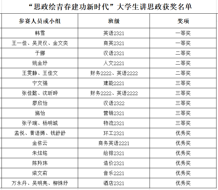 经过激烈角逐,韩雪、王一佳等分获一、二、三等奖。本届“大学生讲思政课”比赛从动员、初赛到决赛历时三个多月,是大学生思想政治教育的重要环节。大赛的成功举办,是对永利官网思政课教育的一次检验,也是对“以赛促学、以赛促教”理念的生动实践。本次大赛充分展现了新时代大学生的精神风貌和理论素养,激发大学生对党的创新理论的政治认同、思想认同、理论认同、情感认同。有助于激励大学生在实现全面建设社会主义现代化国家、全面推进中华民族伟大复兴新征程上主动担当作为,逐梦建功新征程。