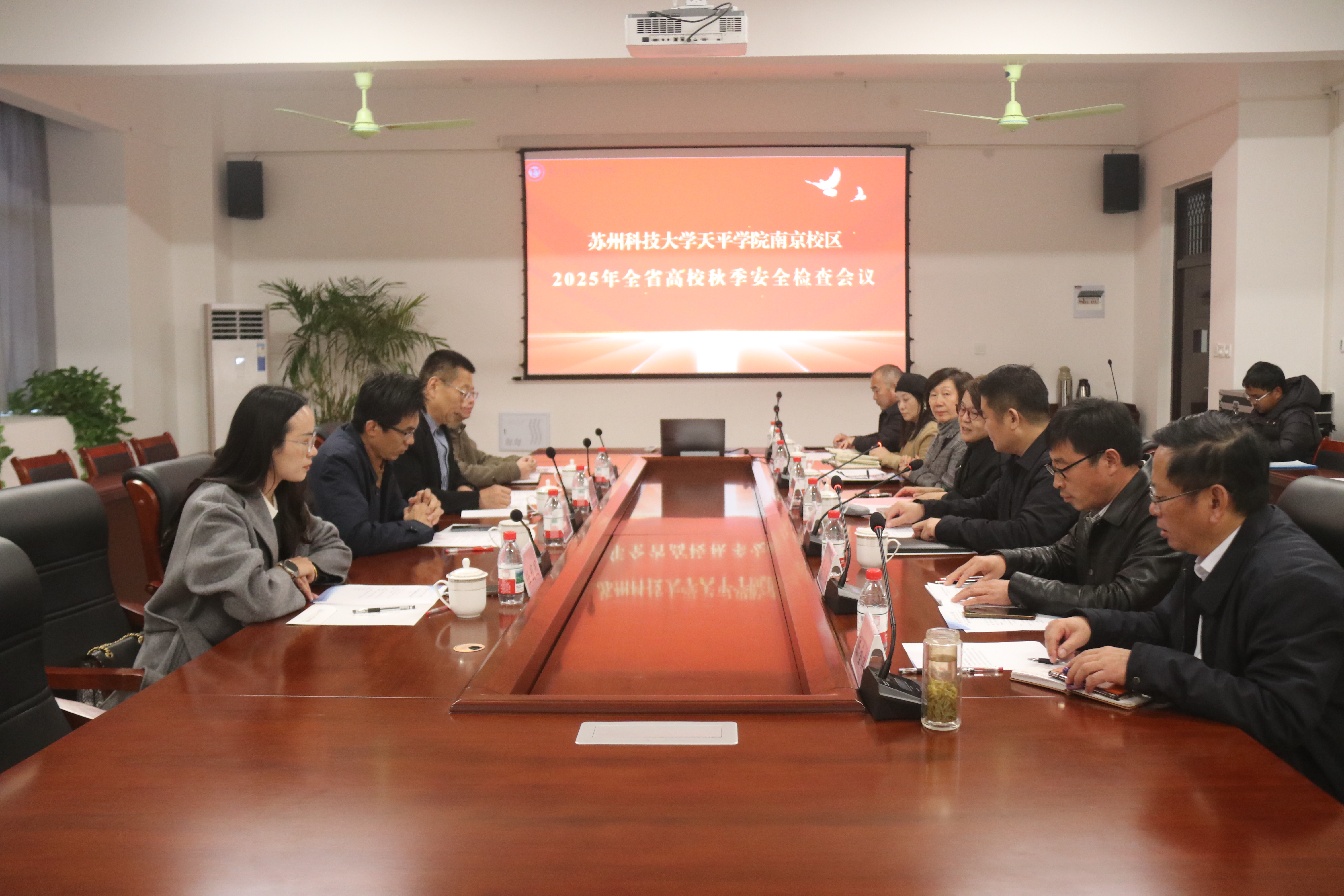 在学院汇报环节,总务保卫处处长高作旭代表校区作安全工作专题汇报。他围绕安全责任体系、安全教育、实验室与危化品管理、消防安全、燃气安全、食品安全、治安防控、交通安全、电动自行车管理等十大方面,系统汇报了南京校区自九月启用以来的安全工作情况。