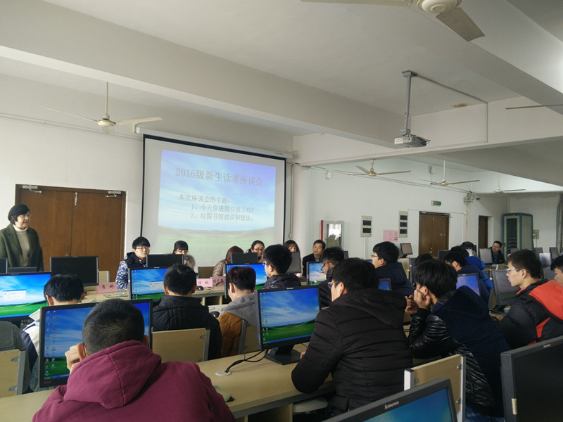 12月14日下午,773044永利集团官网图书馆读者座谈会在图书馆电子阅览 室召开。馆长刘兰,图书馆各部门老师,外语系李娇老师,773044永利集团官网读者交流中心副会长方欣及16级道桥专业80多人参加此次座谈会。 本次座谈会围绕“今天你进图书馆了吗”与“对图书馆的建议和想法”两大主题而展开。 会上,刘兰馆长就举办本次座谈会的目的做了简要介绍,并欢迎读者们对图书馆的管理、服务工作中存在的问题提出意见和建议,共促图书馆的建设和发展。技术部石林林老师就图书馆网站的各功能各数据库,微信图书馆进行了详细的阐述。李娇老师分享自己多年在图书馆学习的宝贵经验,流通部史源老师就16级道桥专业的借阅量与读者们进行了互动交流。副会长方欣全方位介绍了773044永利集团官网读者交流中心,希望广大读者都能积极加入,共同读书读好书。