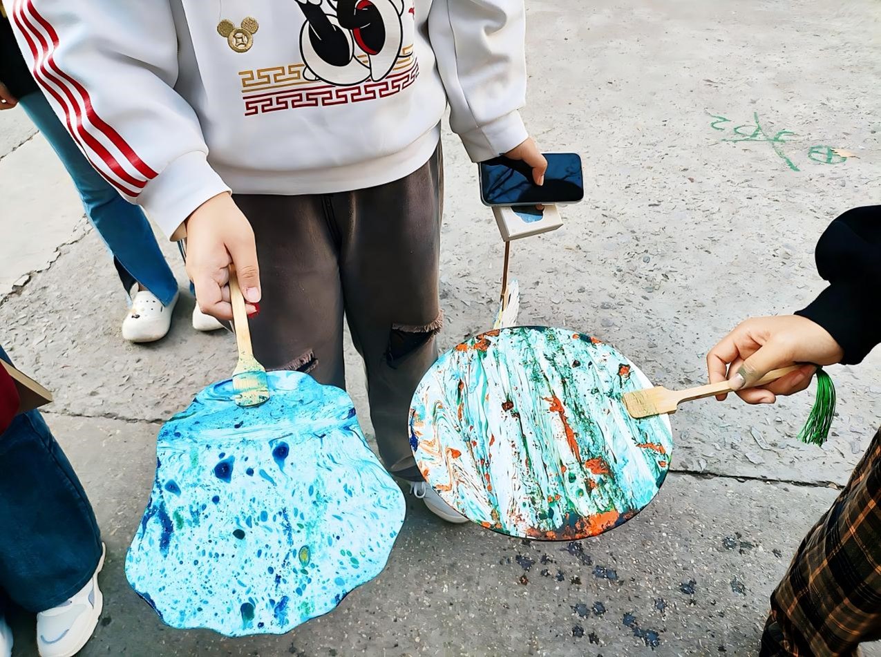 团扇 DIY 区域,则充满了创意与温馨。工作人员贴心地准备了团扇、彩带等 DIY 材料,并耐心地指导参与者进行团扇的装饰和制作。参与者们领取空白团扇和绘画工具后,纷纷沉浸在创作的无穷乐趣之中。有的选择以国庆节为主题的图案进行创作,用鲜艳的色彩精心描绘出祖国的壮丽山河和繁荣景象,仿佛将祖国的大好河山巧妙地浓缩在了一把小小的团扇之上;有的则自由发挥,凭借着自己独特的个性与创意,绘制出自己心仪的图案,让每一把团扇都变成了独一无二的艺术品。大家在这个区域里,用心感受着创作带来的快乐,一把把精美的团扇犹如一件件珍贵的艺术品,承载着对祖国的深深祝福。 此次国庆活动,绝非仅仅是一次娱乐活动,更是一次心灵的深刻洗礼。通过手绘彩蛋、投壶比赛和团扇 DIY 等丰富多彩的活动,极大地激发了大家的爱国热情。让人们在欢乐的氛围中,共同庆祝共和国的生日,深切感受着祖国的繁荣与强大。在这个特殊的日子里,人们用自己的双手和创意,为祖国献上了一份最为真挚的祝福。愿祖国在未来的日子里更加繁荣昌盛,愿我们的生活如同这场国庆活动一般,永远充满欢乐与希望。