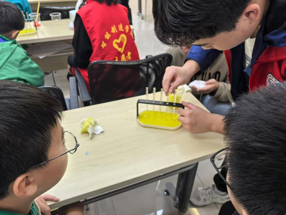 本次志愿服务活动致力于充实社区儿童的课余生活,传播科学知识。本次课程以“纸巾彩虹桥——揭秘毛细现象之谜”为主题,以“理论讲授、交流互动、实验操作”三位一体的教学模式,引导孩子们参与纸巾彩虹桥实验,深刻理解毛细现象的原理,并结合生活中的相关事例加深认识。此次活动不仅使孩子们直观地认识到毛细现象的神奇之处,还在实践中培养了他们的动手操作能力和科学探索精神。