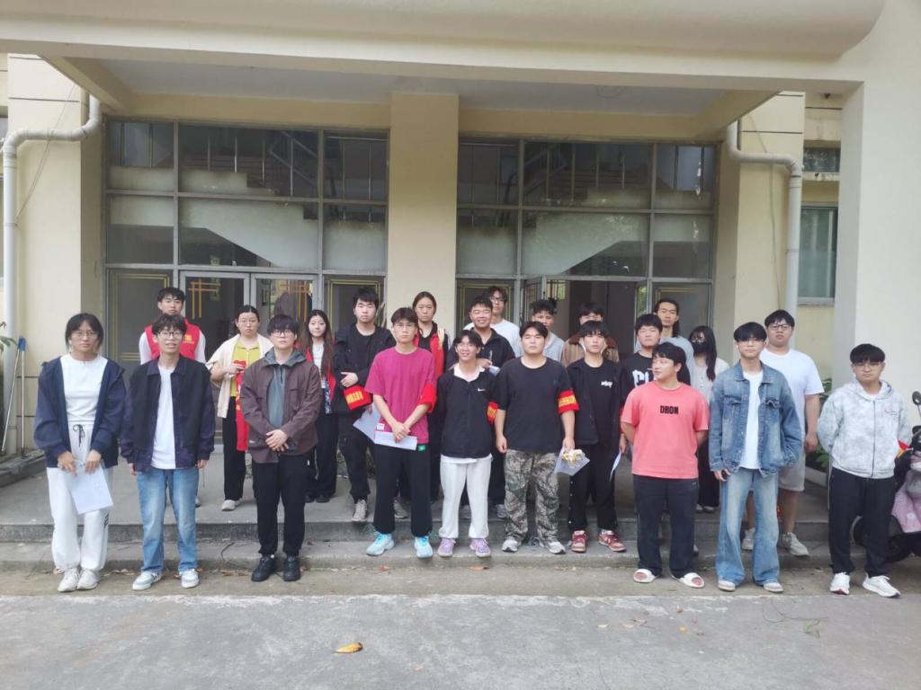 2025年4月22日周二午后。土木工程学院26名志愿者齐聚行政楼前,开展了"落叶为笺,感恩为行"志愿清扫活动。