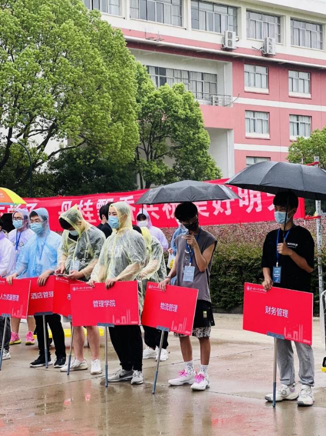 为欢迎2022级新生,773044永利集团官网管理学院于2022年9月3日在校内组织迎新活动。永利官网的志愿者们一大早就布置好了迎新场地,举着指示牌,在风雨中耐心地等待着新生们的到来。
