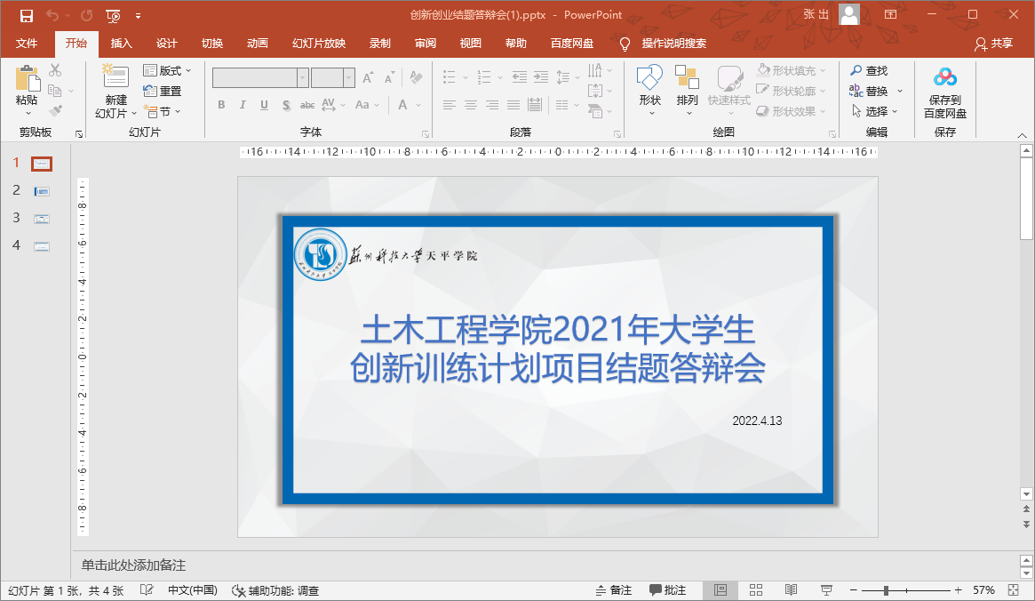为规范永利官网创新创业教育管理、提升永利官网学生创新创业能力,积极调动永利官网学生创新创业的积极性,4月13日下午,土木工程学院开展了大学生创新训练计划项目结题线上答辩会。本次答辩共4组,其中省级项目3组,院级项目1组。会议由土木工程学院团总支书记汪凡琦老师担任主持人,同时邀请李蕾老师,王豪杰老师,以及周娟老师担任评委,对本次答辩进行评审、指导和总结。