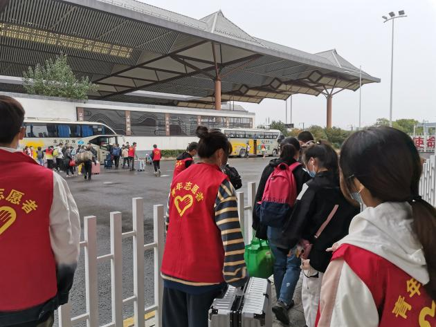 迎新工作如火如荼,到处都是忙碌的身影。尽管站内人头攒动,迎新活动仍保持秩序井然,防疫工作也在所有人的配合下有序展开。迎新的学长学姐们热情地为新生、家长们解惑。志愿者们也主动帮忙搬运行李,耐心地介绍着各种注意事项,一路欢声笑语。即便很多新生第一次离开父母,第一次远游求学,却没有感到丝毫孤独与不安,因为这里有从一个家回到另一个家的温暖。