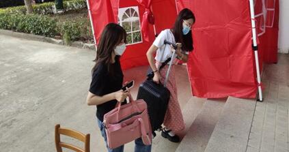 随后一些新生与家长陆续来到了学校,迎新工作人员热情的接待每一位新生并检查行程卡、健康码、核酸检测报告,迅速帮助新生找到宿舍、领取钥匙、安置行李,为家长及时安排座位休息,然后引领新生完成注册等一系列手续,在全体人员的配合下有条不紊的进行着迎新工作。