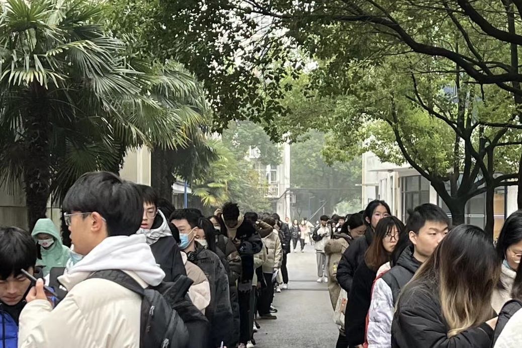 在备考期间,学校严格要求学生通过企业微信进行7天报备,并着重强调疫情期间大家做好防控工作,减少社交,保持距离,认真备考。考试当天,志愿者们在指定地点为考生们提供帮助,考场外学生们井然有序的排着队,等待测量体温和核实信息后才能进入考场。在紧张的答题后,考生们交上了自己独有的答卷,在志愿者的协助下陆续离开考场,2022年12月的英语四六级考试至此圆满结束。