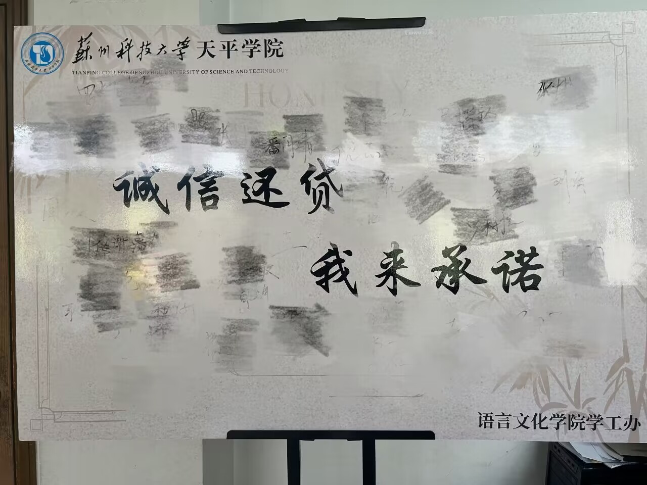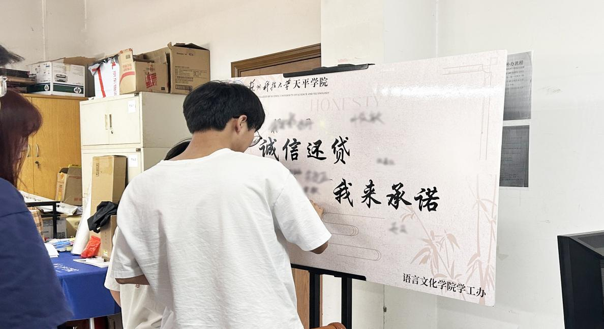 为了进一步增强学生的诚信意识和社会责任感,4月12日,语言文化学院在行政楼106室成功举办了以“诚信还贷,我来承诺”为主题的诚信教育签名活动