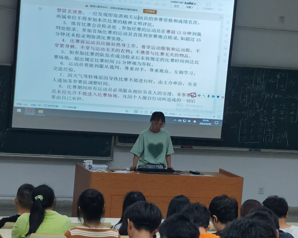 本次运动会,永利官网学子积极参加,运动员包含大一、大二、大三,甚至大四学生。团总支副书记姚晓霏同学为大家讲解了本次运动会的一些参赛须知,同时强调了运动会的一些注意事项,让运动员们签署了运动员承诺书。最后,团总支书记孙恒老师强调,各个运动员要在比赛开始前做好热身运动,在保障安全的情况下,勇夺佳绩,赛出精彩、赛出风貌;同时,孙恒老师对各级学生组织负责事宜做了一一指导,强调各级学生组织要做好后勤保障工作,服务好每名运动员,为运动会的有序展开贡献自己的一份力量。