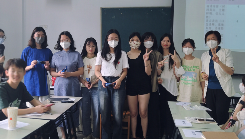 辩论赛尾声,主持人宣布了各组得分结果,公布了“优秀团队”“最佳辦手”获奖者。随后金老师总结发言,首先对各位辩手的精彩表现给予肯定,就各方不足进行细致的讲解指导,并表示“辩论不仅考验表达能力,而且考验思辨能力和反应能力,我们应该留有风度,以辨明理,以论布道。”辩论赛取得圆满成功,金老师最后也对同学们表示感谢和祝福“感谢同学们带给我、带给我们每个人的美好回忆!相信今天的情景会永远印在你们的心中!老师爱你们!”