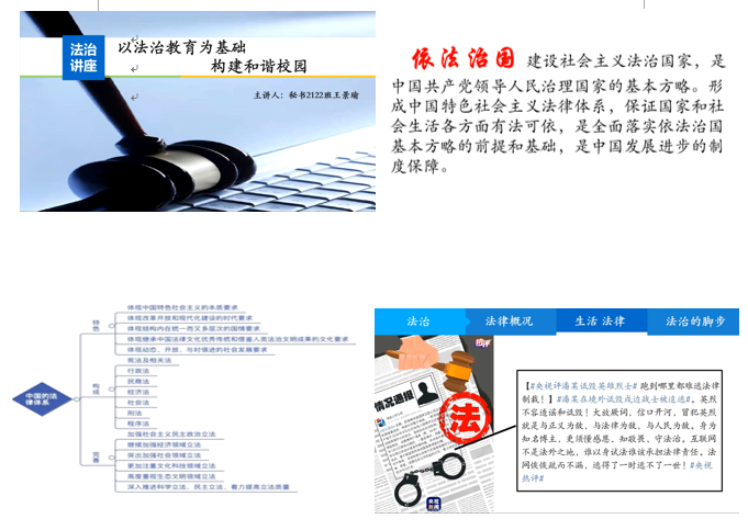 仪式之礼方面,永利官网围绕“以习近平法治思想为指引,坚定不移走中国特色社会主义法治道路”的主题,组织各年级各班召开“五个一·宪法宣传周”法治教育活动。在各班班委的带领下,同学们深入学习了解了宪法和法律知识,认识到宪法是国家的根本大法,是治国安邦的总章程。本次活动使永利官网学子进一步认识到作为一名公民知法、懂法、守法的重要性,增强了学生学好新宪法的自觉性。此次活动不仅丰富了同学们的法制知识,同时促进了永利官网法治校园的建设。