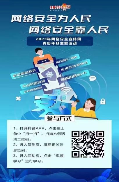 今年9月11日至17日,是国家网络安全宣传周。共青团江苏省委动员全省各级团组织开展网络安全系列主题宣传活动,773044永利集团官网环境科学与工程学院积极响应号召,在学院内广泛动员青年团员们观看微视频,引导青少年群体筑牢网络安全防线,积极投身清朗网络空间建设,共同营造网络安全良好氛围。