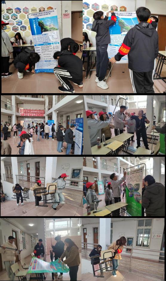 招聘会前期,志愿者认真做好招聘会会场的各项布置工作,引导前来我校参加的各家企业公司到指定地点就位,并配合企业有序开展招聘工作,帮忙搬水、分发企业介绍单、张贴海报等,志愿者们分工明确,为前来参加面试的同学们提供了一个良好的招聘环境,也让同学们得到了更准确有效地帮助。