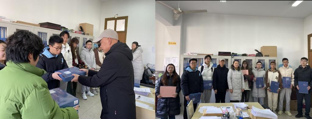 活动开始,老师们为同学们逐一发放了精心准备的冬季保暖物品。在活动进行的过程中,马勇院长与同学们亲切交流,了解了他们在寒冬季节里的生活状况,并激励学子们要保持乐观向上的心态,鼓励他们在学业和生活中克服困难,不断进取。同时,罗欣老师在发放过程中细致嘱咐同学们注意寒冷天气的保暖措施,还表达了学院对每位学生的关切之情。辅导员王浩宁老师表示,这不仅是一场物质上的送温暖,更是一次心灵的交流,希望每一位学生都能在寒冬中感受到温暖。整个现场洋溢着温馨与感激的氛围,受助学生纷纷表示对学院的感谢,并表示将以更加饱满的热情投入学业。