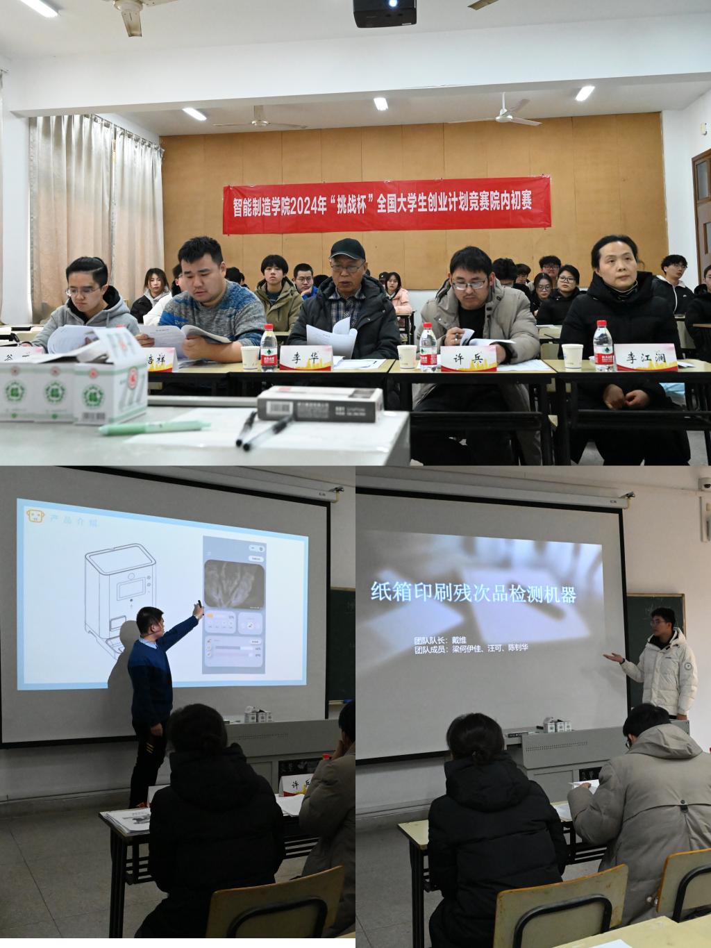 本次“挑战杯”创业计划竞赛经过前期广泛动员、宣传,同学们积极报名,通过层层筛选共有9支队伍进行答辩环节。本次选拔赛分为项目展示和评审答辩两个环节。项目展示环节中,参赛团队代表人立足创业计划设计理念,结合专业特色与优势,通过PPT讲解、视频播放、产品演示等形式全方位地展示项目成果,从项目背景、特色优势、技术核心、营销策略、实践调研、发展规划、盈利模式、未来展望、团队协作等各方面阐述分析项目的独特性、创新性、可行性和应用性。