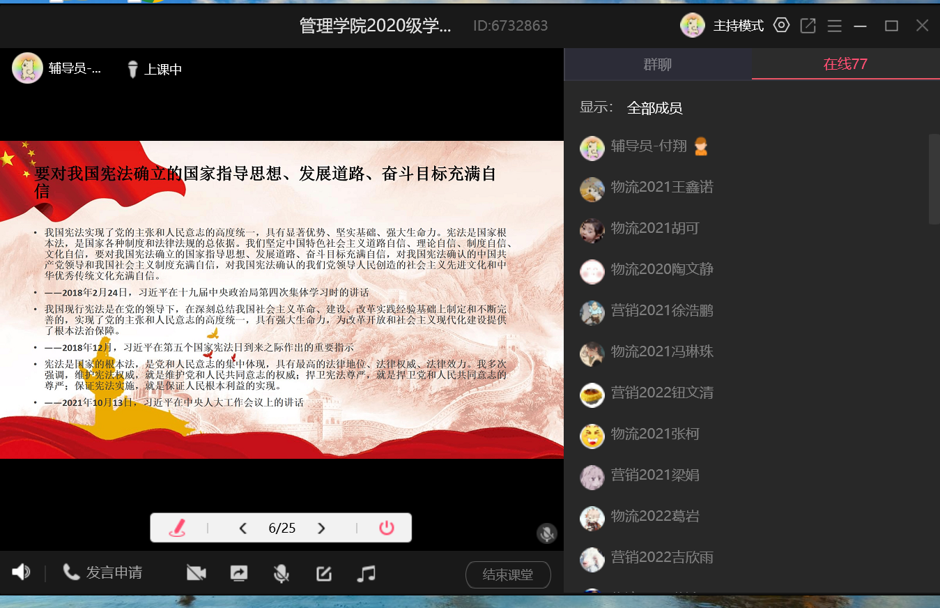 此次活动分为前期准备阶段和后期宣讲阶段。前期准备阶段,管理学院学生党支部全体党员深入学习上级文件精神和相关法治宣传材料,利用假期时间进行整理归纳,形成宣讲材料。后期宣讲阶段,首先由本支部党员老师对本次拟发展的7名同志进行了宣讲材料的培训,让他们先进行了一轮学习,然后利用辅导员形势与政策课课堂和发展对象进班级这两种方式进行宣讲,带领全院学生进行法治学习。