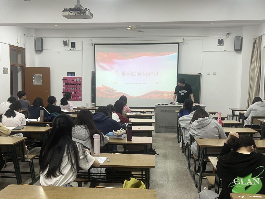 为深入贯彻落实党的教育方针,以党建引领学风,管理学院5月开展了学风建设系列活动之“党旗飘扬,学风蔚然”活动。此次活动旨在通过支部党员深入班级,引领同学们集中学习学生手册中《学生违纪处分规定》等规章条例,在学院营造积极向上、严谨求实的学习氛围,筑牢学生的诚信考试意识,提升学生的学习积极性。