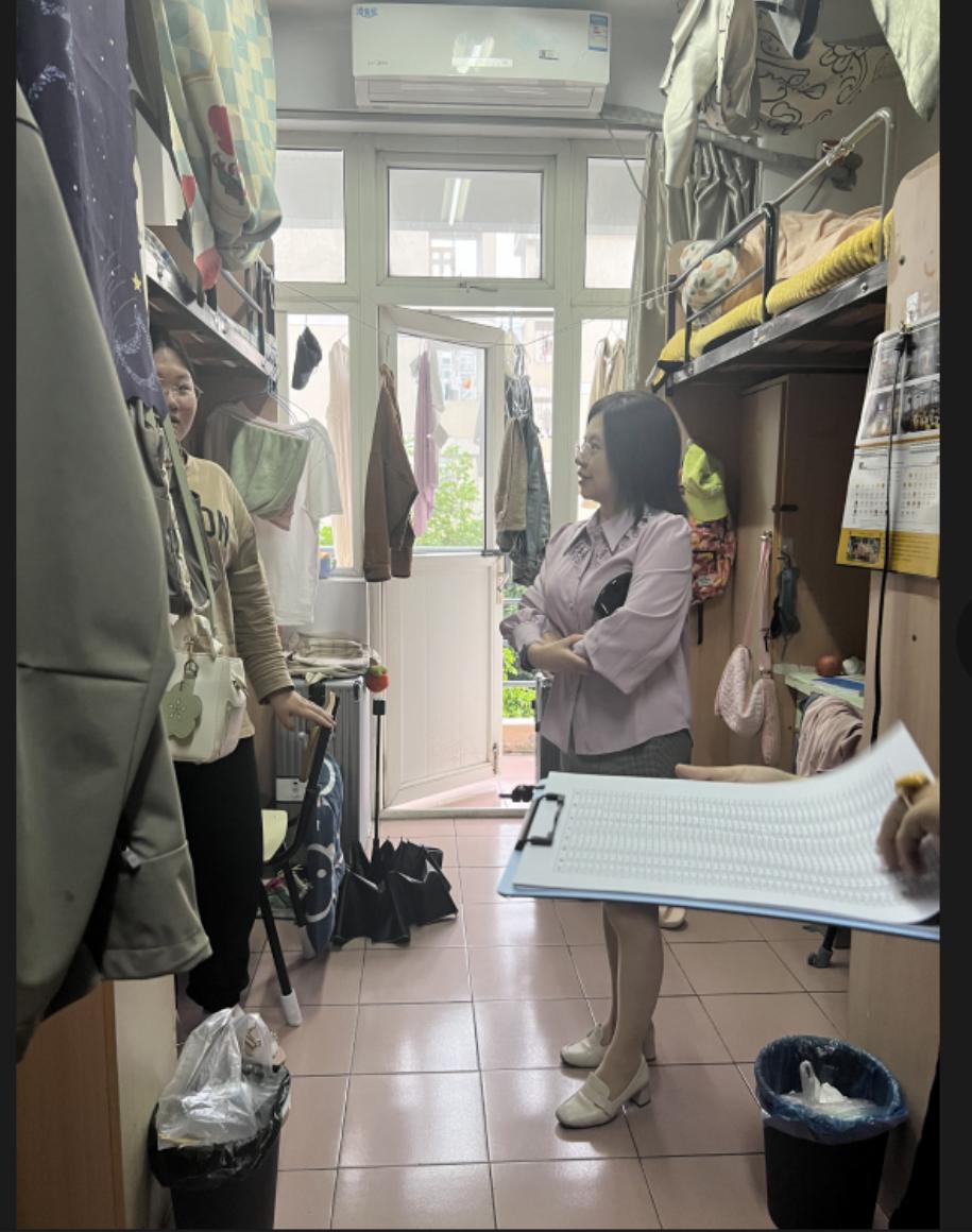 张婧副院长还检查了宿舍的设施设备和安全状况,她强调,学院将始终关注学生的生活和学习环境,积极解决同学们在宿舍生活中遇到的困难和问题,为大家提供更加舒适、安全、便利的住宿条件。